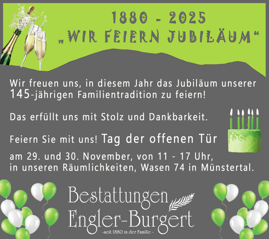 Wir ermöglichen einen Abschied, der Ihnen entspricht – zum Beispiel mit einer individuellen Trauerfeier, schöner gesagt Lebensfeier. Denn das gelebte Leben wird gefeiert, dass dieser trauriger Tag in trotzdem schöner Erinnerung bleibt.